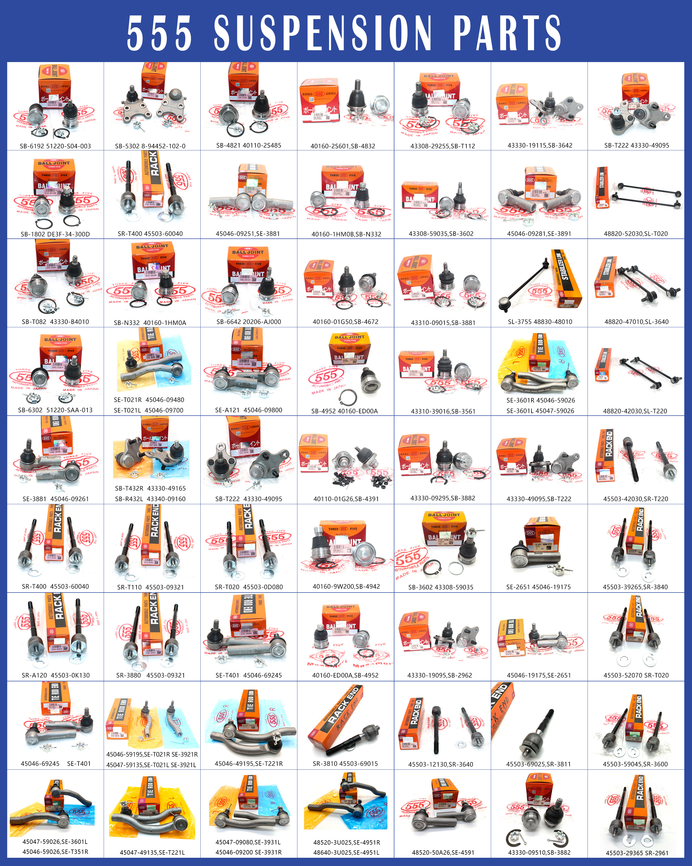 Q1: Quantos anos sua empresa está no campo de negócios de peças de automóveis?A1:Nossa empresa estabelecida desde 2008, há mais de 15 anos de experiência no negócio de peças de automóveis. campo Q2: Que produtos fornece a sua empresa?A2:Os nossos produtos são uma gama completa de peças de automóveis originais, OEM e de reposição para carros japoneses, carros coreanos e carros alemães.Q3: Que países exportaram?A3: América do Norte, Europa Oriental, América do Sul, Europa Ocidental, Médio Oriente, África, Sudeste Asiático, etc.P4: A sua empresa tem a sua própria marca?A4:A nossa empresa tem a sua própria marca REXWELL.Q5: Qual é o MOQ para cada item?A5:Depende dos modelos. Se tivermos estoque para os itens, podemos aceitar a quantidade conforme pedido dos clientes, caso contrário, itens diferentes podem ter MOQ diferente.Q6: Que tal o prazo de entrega?A6: Normalmente, 3 a 7 dias após a confirmação da encomenda, dependendo do stock.Q7:Dá alguma garantia aos seus produtos?A7: Basicamente, temos 1 ano de garantia de qualidade para peças sobressalentes da marca REXWELL.P8: Tem algum certificado?A8:Sim, como ISO: 9001, SGS etc.P9:Pode desenvolver novos produtos como pedido dos clientes?A9:Damos as boas vindas aos clientes para fornecer amostras para desenvolver os produtos que eles precisam.